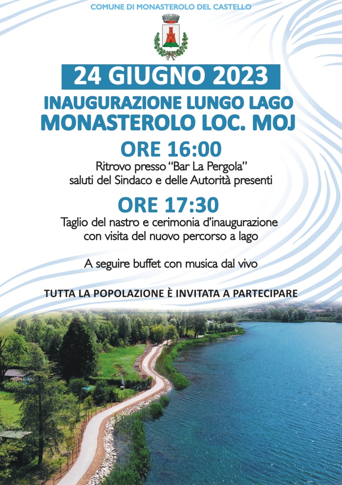 Alle ore 17:30 ci sarà il taglio del nastro e la cerimonia d'inaugurazione con visita del nuovo percorso a lago.